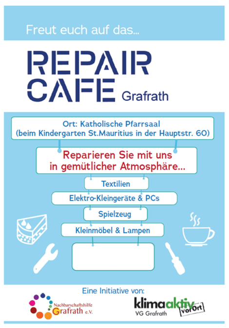 Das Repair Café ist eine Initiative von "Klimaaktiv vor Ort" und der Nachbarschaftshilfe Grafrath.
